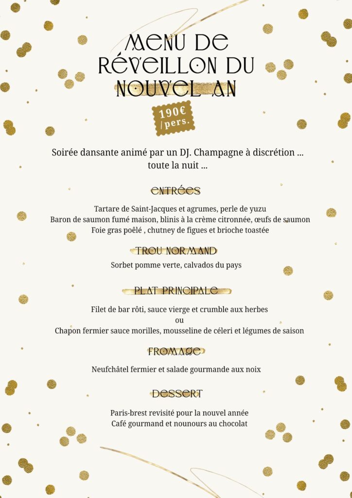 Nos menus de réveillon sont disponibles en exclusivité pour les soirées du 24 et du 31 décembre, et les places sont limitées. Pensez à réserver dès maintenant pour garantir votre place et vivre une expérience inoubliable.